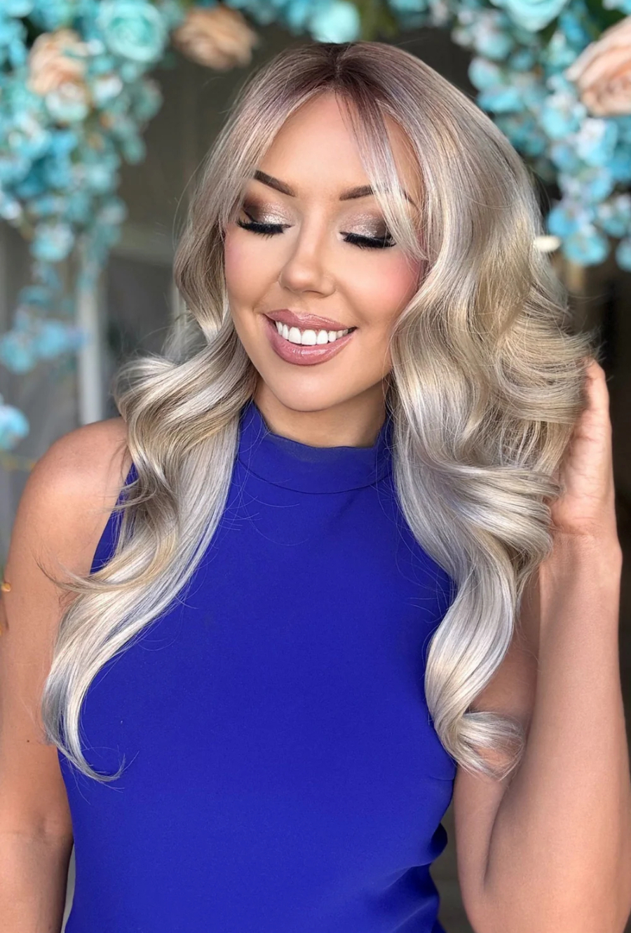 Bright luminous blonde with a subtle ash tone