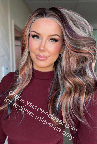 Dark brunette with fun pops of blue, auburn and ash blonde